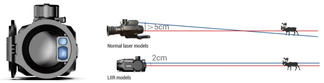 Je vybaven objektivem o průměru 50 mm a vysoce kvalitním displejem OLED s rozlišením 1024 × 768 px, který zajišťuje jasný a detailní vizuální zážitek. Díky patentované technologii LIIR je dosaženo dokonalé souososti laserového a infračerveného paprsku, což zvyšuje přesnost a spolehlivost měření. Laserový dálkoměr umožňuje měřit vzdálenost cíle až do 1200 m s přesností ±1 m.