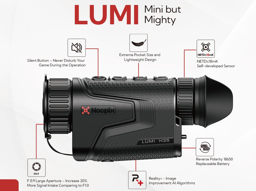 Nová řada termovizních monokulárů, která se vyznačuje svým kompaktním tělem, jež nezapře své silné schopnosti. Díky nově vyvinuté technologii, pokročilým algoritmům Reality+ AI a digitální stabilizací obrazu nabízí výjimečnou kvalitu obrazu, která vyniká ve své třídě. S LUMI máte zařízení, které je nejen výkonné, ale také neuvěřitelně praktické na nošení. Je menší než běžný mobilní telefon, což z něj činí ideálního společníka pro každou příležitost.