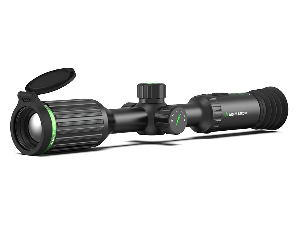 Conotech Night Arrow 350 PRO je moderní termovizní puškohled, který kombinuje klasický design s inovativními funkcemi. Díky vysoce citlivému snímači s rozlišením až 384 × 288 px, velikostí pixelu 12 μm a citlivostí NETD <15 mK poskytuje ostrý a kontrastní obraz i v náročných podmínkách, jako je déšť, mlha nebo sníh. Night Arrow je navržen pro snadné a tiché ovládání – díky ergonomickému kolečku a funkčním tlačítkům je vhodný pro praváky i leváky, přičemž při lovu neruší okolí.