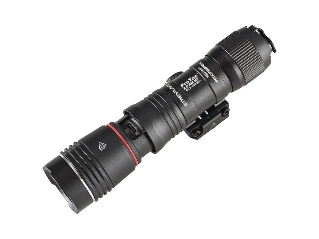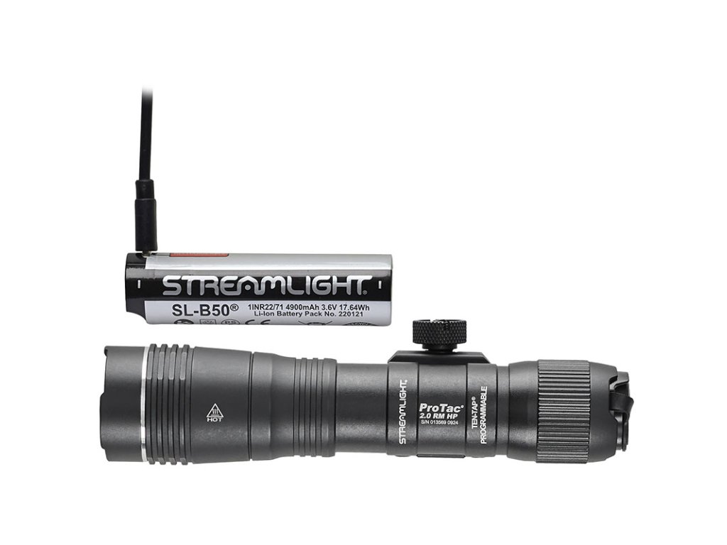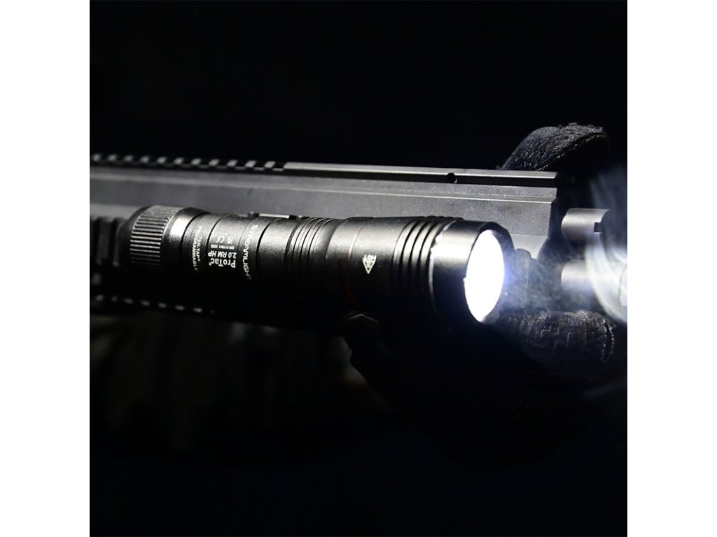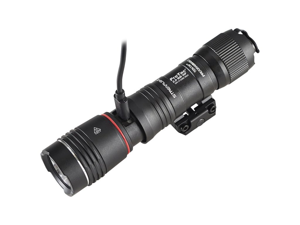 STREAMLIGHT PROTAC RAIL MOUNT 2.0 HP - je momentálně nejvýkonější zbraňová LED svítilna od Streamlight se světelným výkonem 2000 lumenů (intenzita svitu 85 000 candela) a dosvitem až 583 metrů. Doba svitu na plný výkon je až 2 hod 30 min. Se svým výkonem patří svítilna řady ProTac 2.0 HP k nejvýkonějším modelům v taktické sérii svítilen ProTac Rail Mount. Napájení svítilny zajišťuje nabíjecí akumulátor velikosti 21700 SL-B50 s kapacitou 4 900mAh. Ten se dá nabíjet jak přes tělo svítilny, tak i zvlášť mimo tělo svítilny přiloženým nabíjecím kabelem USB / USC-C. Perfektní optika vytváří koncentrovaný paprsek světla s optimálním periférním svícením. Svítilna je vybavena integrovanou montáží na picatinna rail (MIL-STD1913). Rail Mount 2.0 HP lze ovládat patním spínačem. Výrobce nabízí svítilnu jak s patním spínačem (kód SML89013) tak i s kabelovým spínačem dálkovým (kód SML89014). Ten umožňuje pouze mžikové svícení. K samostatné svítilně se dá dokoupit i kabelový spínač, který se nachází pod kódem (SML89008). Ten umožní uživateli používat svítilnu za pomoci dálkového spínače jak v režimu mžikového svícení, tak i stálého svitu. PROTAC RAIL MOUNT 2.0 nabízí tři operační naprogramovatelné režimy: 1.Vysoký/stroboskop; 2. Vysoký; 3. Nízký/Vysoký; Je určena pro střední a dlouhé zbraně. Díky použitým materiálům bezpečně odolává zpětným rázům.